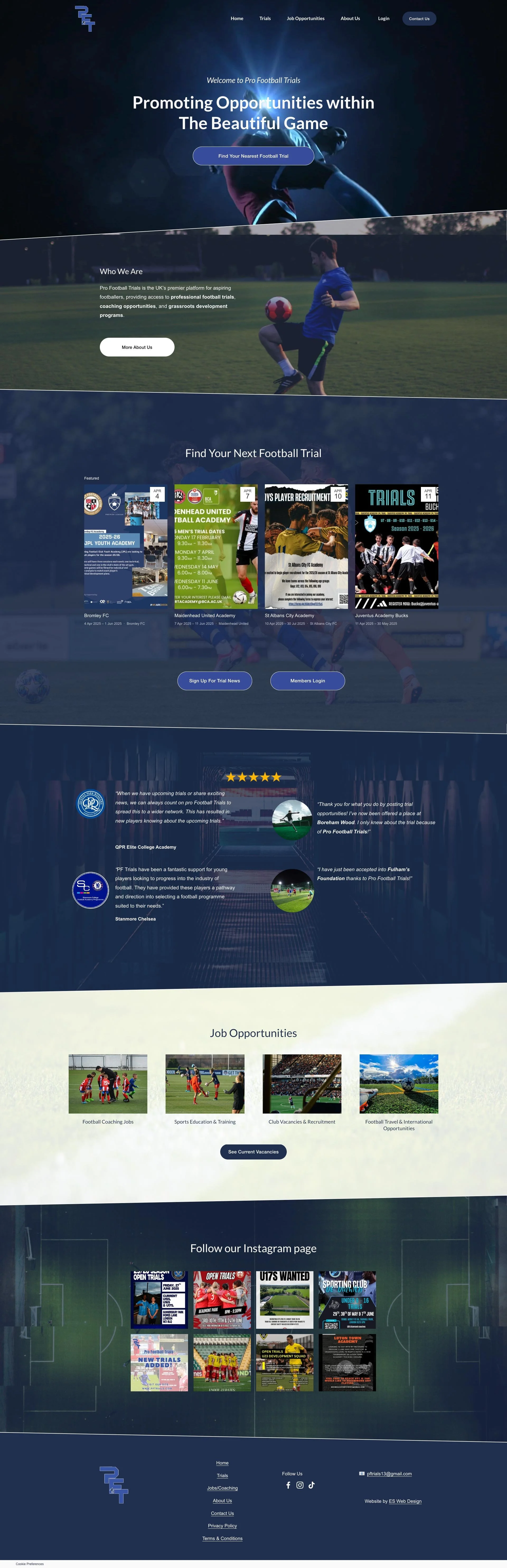 When designing the Pro Football Trials website, my goal was to build a bold, modern Squarespace platform that captures the excitement and energy of chasing a career in football.